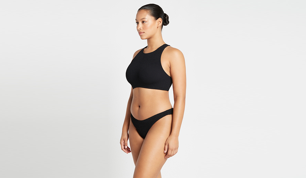 Our swimwear is unsized and our swim fabric generally fits across a size range of XS to L