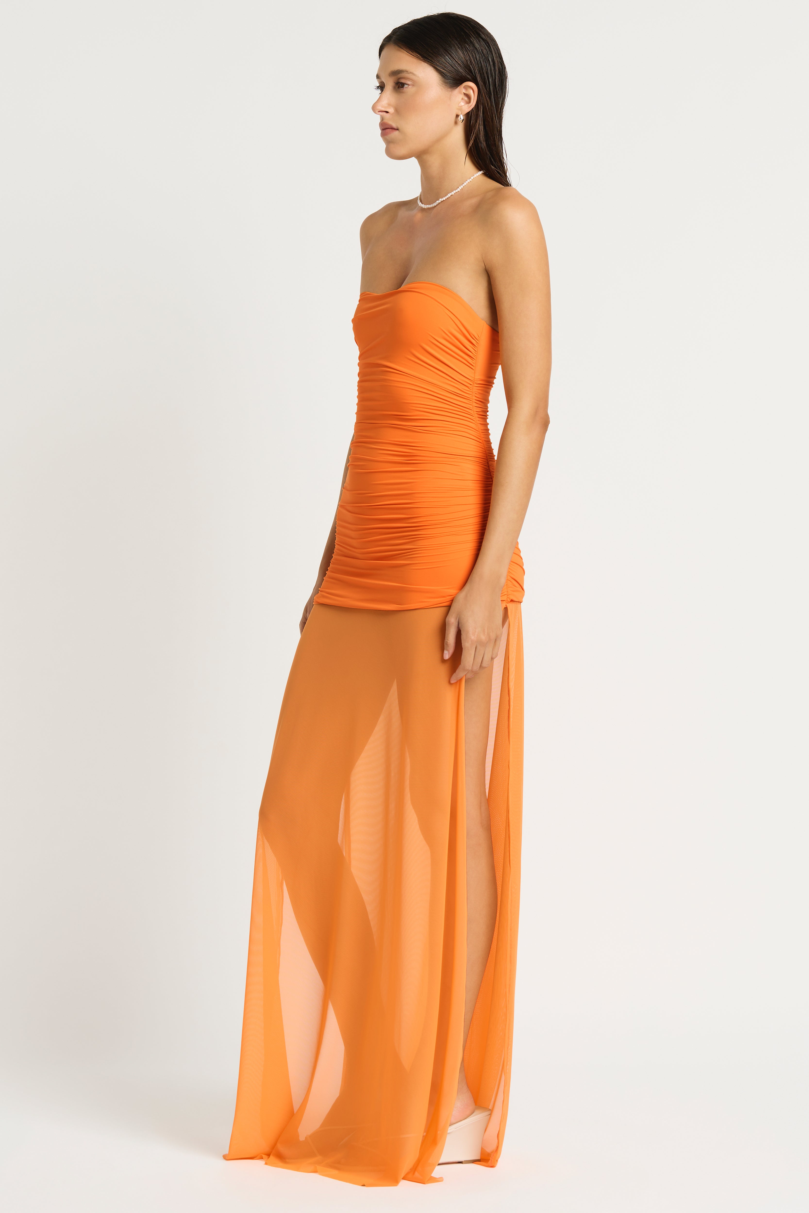 - Strapless dress with mesh skirt