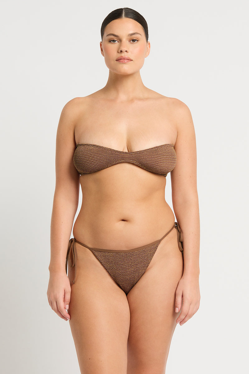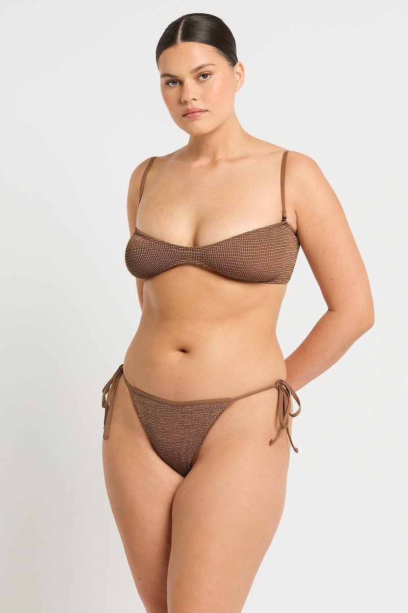 The Anisha Brief is a mid-coverage style with adjustable ties perfect for tanning. Handcrafted in Sydney, Australia from The Authentic Crinkle™.